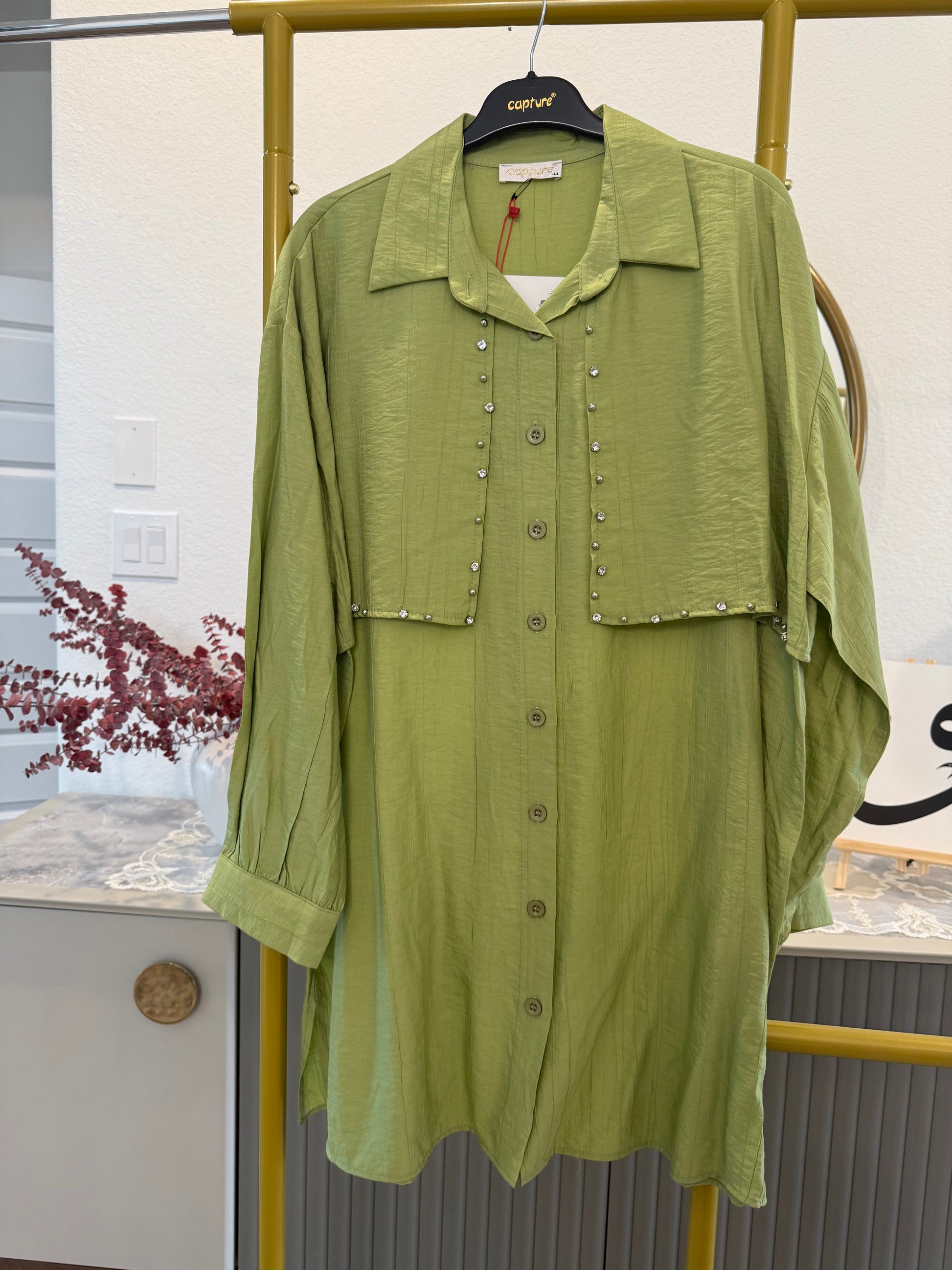 ✨ Style Vibe: A chic and refreshing tunic — perfect for everyday wear, modest office looks, or casual outings. The studded chest detail adds a hint of sparkle without being overwhelming.