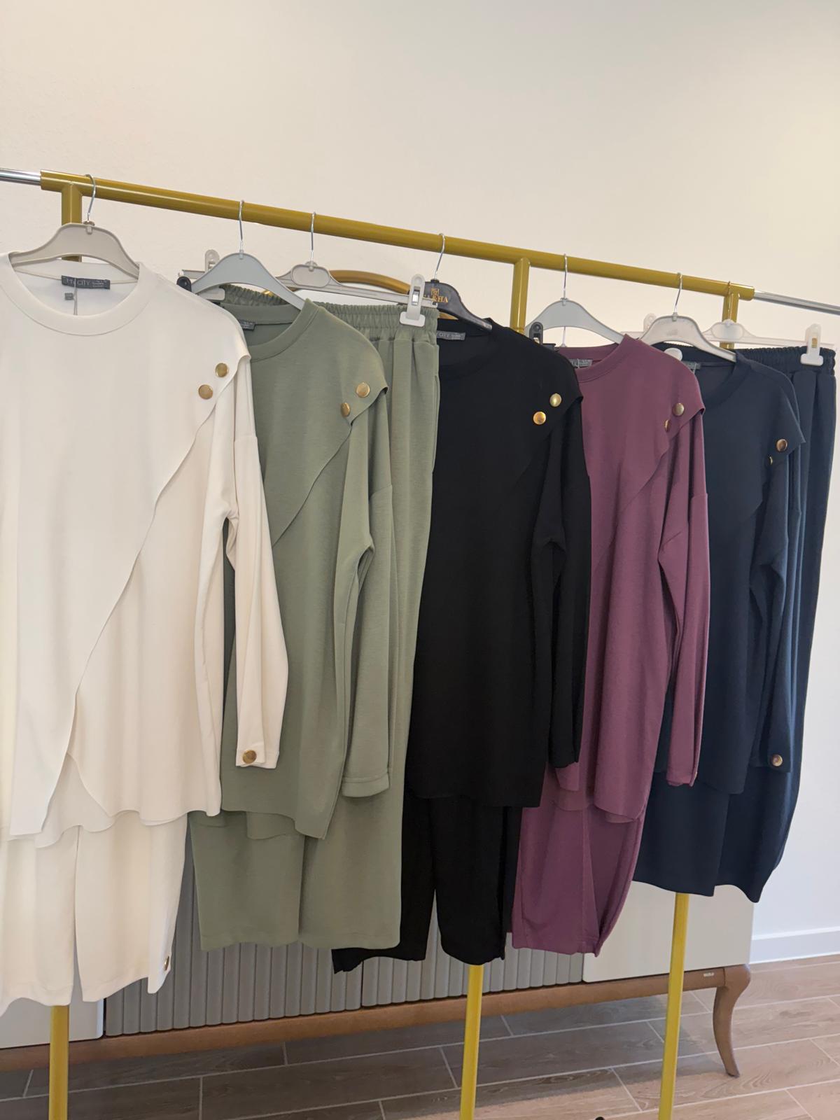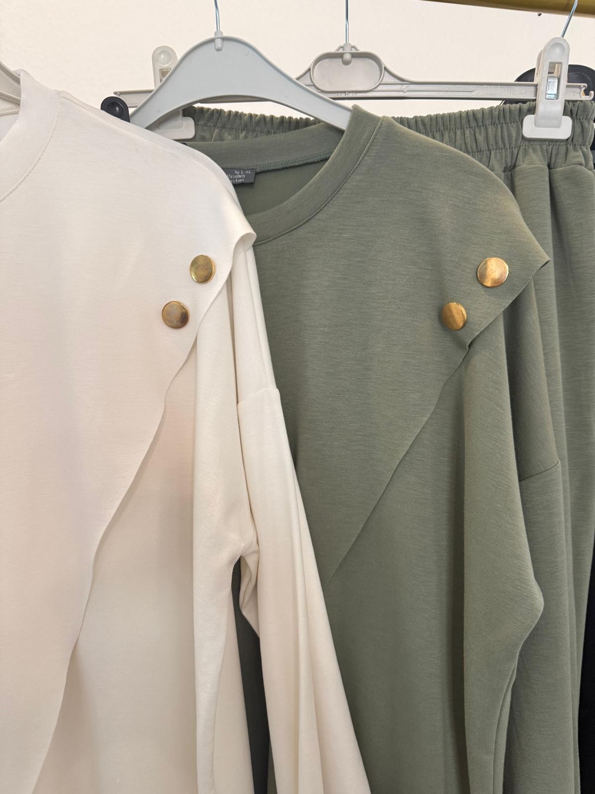 This elegant two-piece set combines comfort with chic style, perfect for everyday wear or casual outings.