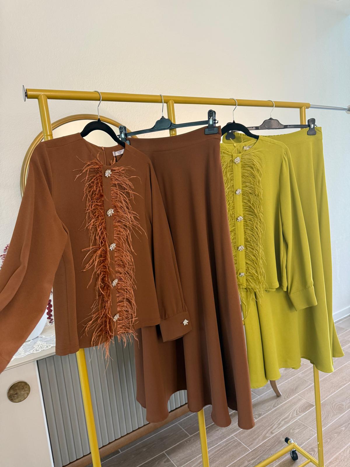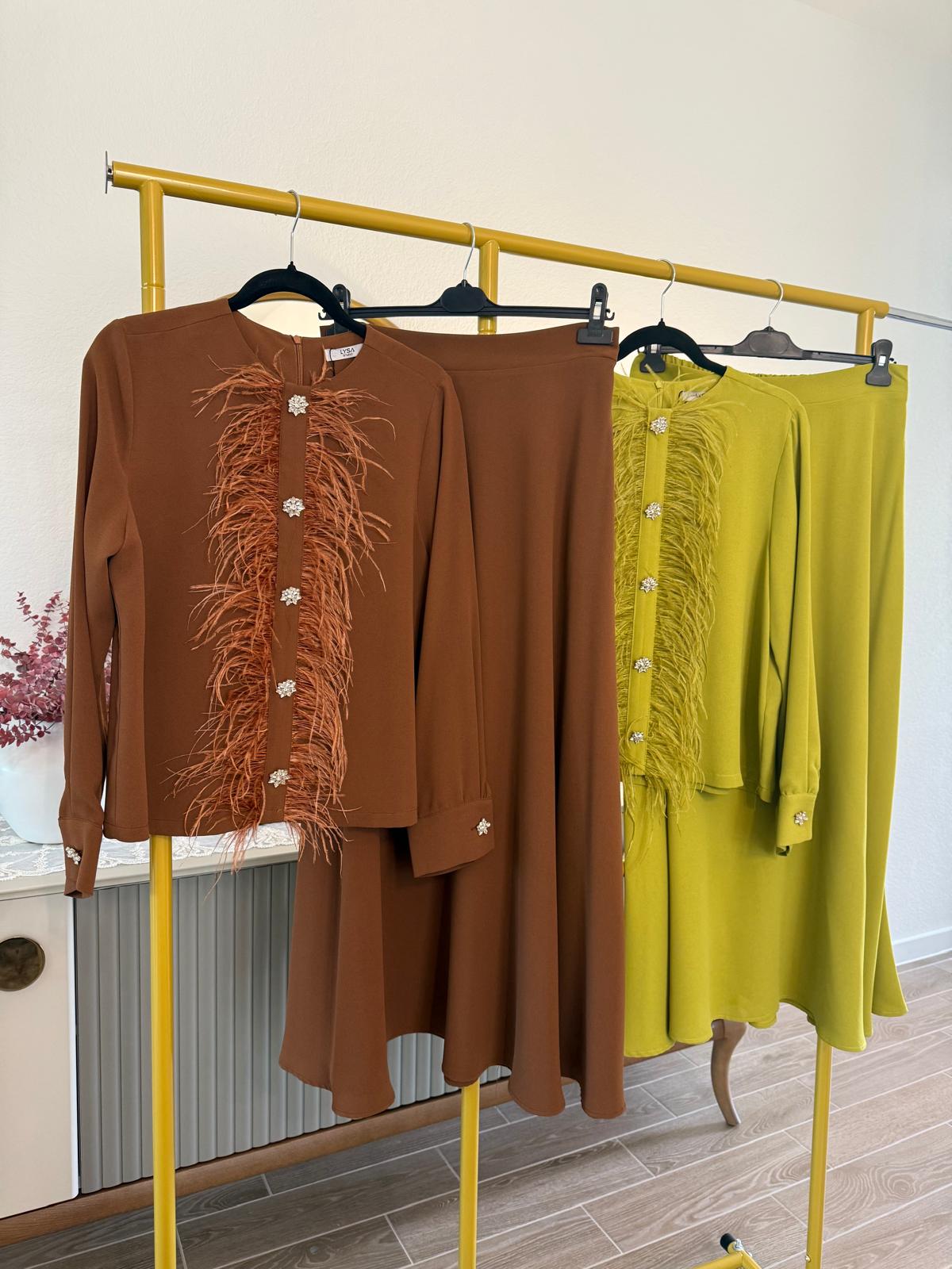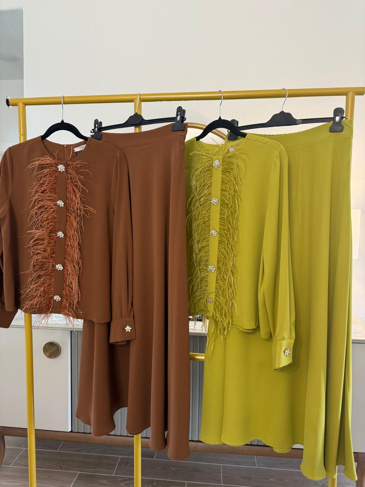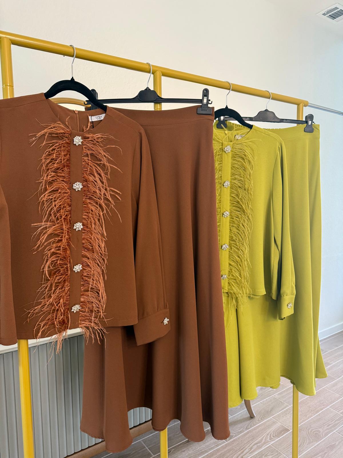 Step into timeless elegance with this sophisticated brown two-piece set, designed for special occasions and evening gatherings.