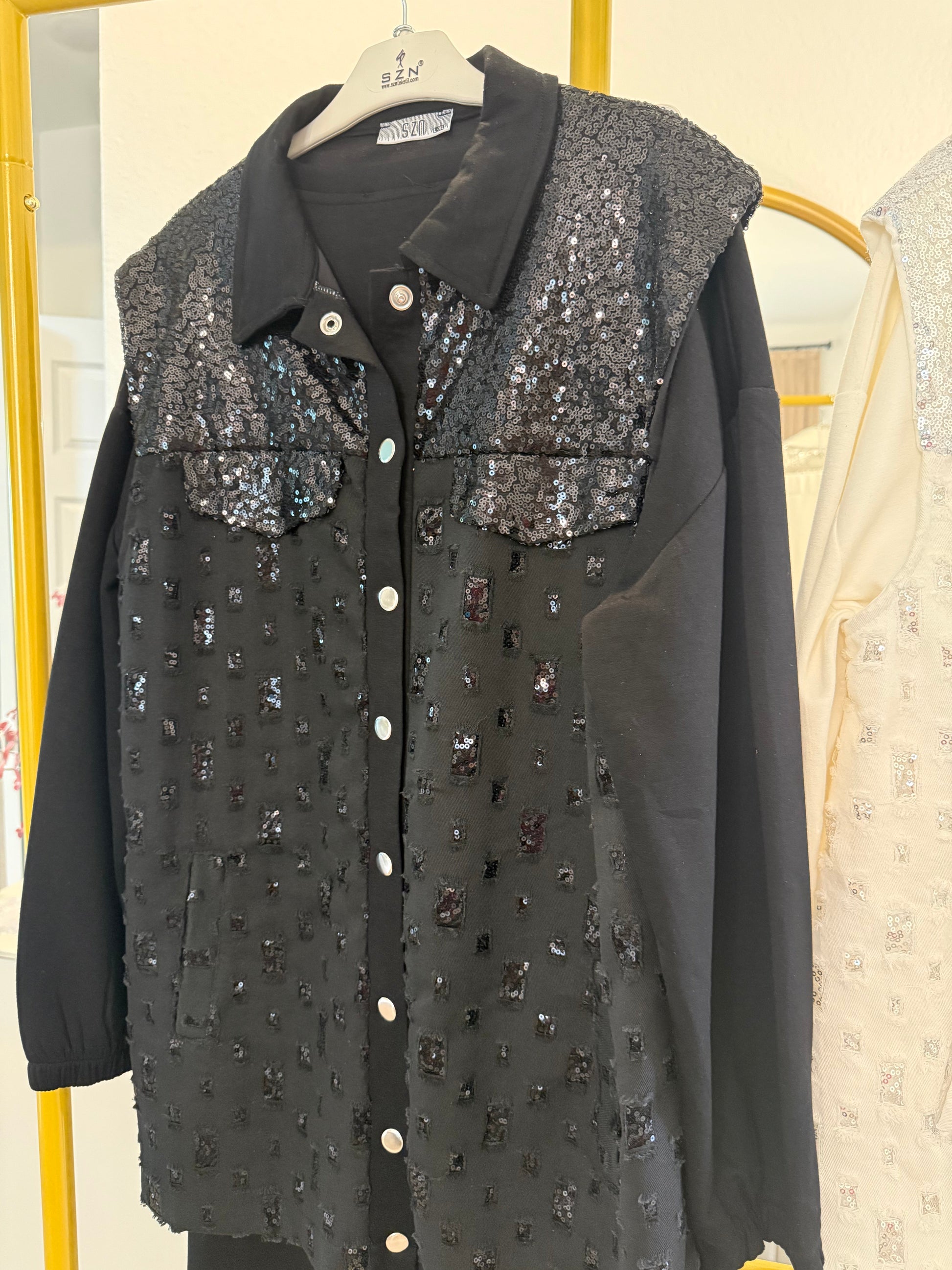 Three-Piece Sequin Embellished Set – Black & White Options