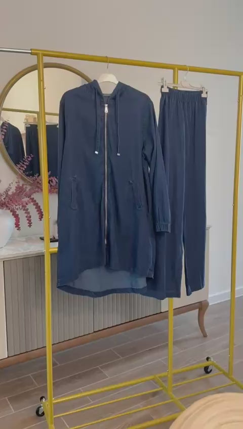 ✨ Style Vibe: A relaxed and versatile set perfect for daily wear, travel, or casual outings. It blends sporty hoodie details with a modest, elegant tunic-pants silhouette.